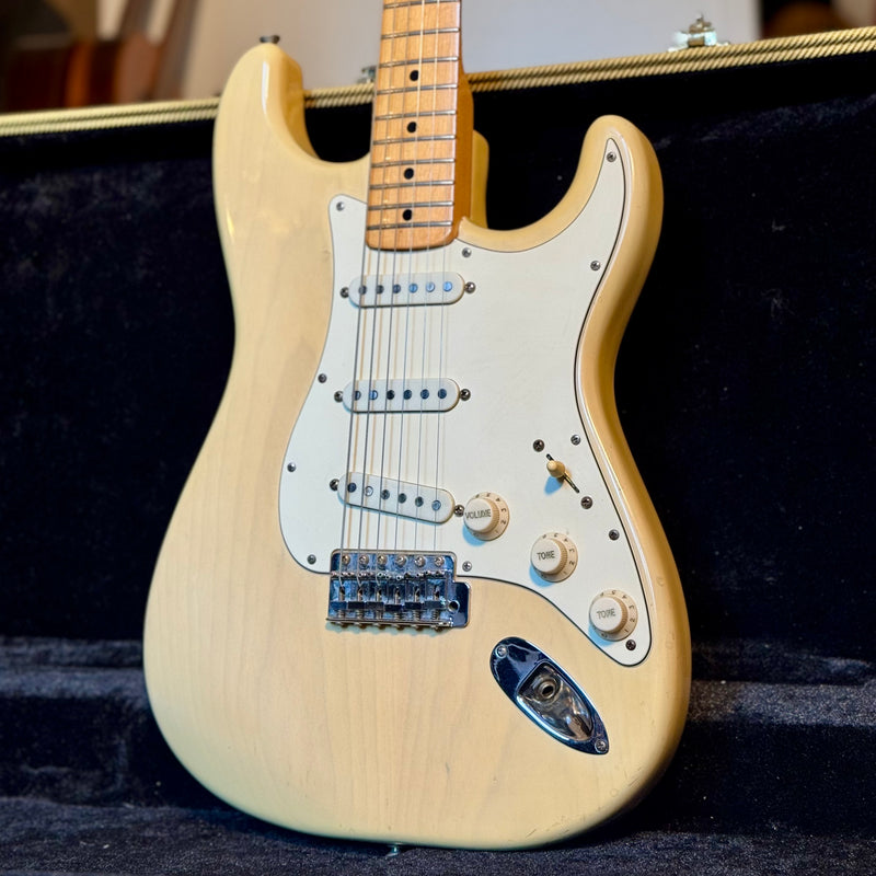 Cette Fender Stratocaster Blonde de 1976 incarne l’essence même des guitares vintage de l’ère CBS, une période charnière des années 1970 marquée par des évolutions techniques et esthétiques qui ont façonné la légende de la Stratocaster.