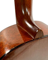 Le Style 18 apparu chez Martin en 1854 évoluera en 1917, année où l’acajou remplace le palissandre pour le dos et les éclisses, une caractéristique que l’on retrouve donc précisément sur ce modèle de 1953.