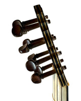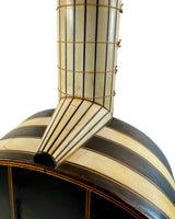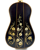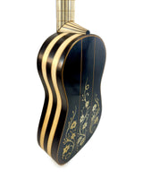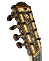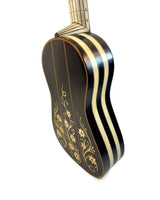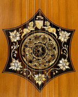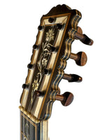 Les instruments de cette époque sont de véritables œuvres d’art, richement décorés de marqueteries complexes associant ivoire, ébène et parfois écaille de tortue, avec des rosaces multiples en parchemin finement découpé, véritables signatures du savoir-faire des grands luthiers.