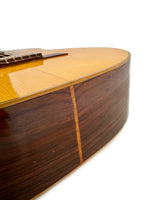 Les ateliers français privilégient alors des bois soigneusement sélectionnés, épicéa massif pour la table d’harmonie et palissandre pour le fond et les éclisses comme ici, dans une recherche constante d’équilibre entre puissance, clarté et richesse harmonique.