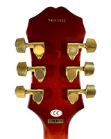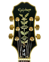 - Décorations : Fileterie en bordure de table, de fond, de touche, de tête et de pickguard / Repères de touche rectangulaires / Incrustation florale sur la tête en dessous du logo Epiphone incrusté également