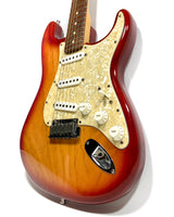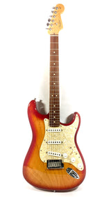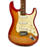 Beau modèle de Stratocaster American Standard en finition Sienna Burst fabriquée par Fender aux États-Unis, à Corona en Californie, en 2002.