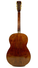 En effet, au delà de la très belle construction ainsi que des beaux bois, elle se distingue particulièrement par sa qualité sonore (décrit en fin de description) et son format plus ample qu'un format parlor habituel, mais également son confort de jeu.