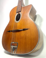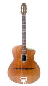 Ici, ce modèle est une Saint Louis Blues, datant certainement du début des années 1950. Avec ces 14 cases hors caisse elle est la guitare parfaite pour les solistes.