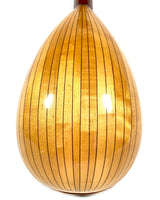 Comme tous nos instruments, cette mandoline a été réglée avec soin avec un jeu de cordes Fisoma à filets plats en tension light.