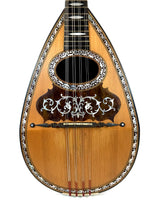 Ainsi cette mandoline Stridente décorée des années 1900 incarne avec éclat le raffinement esthétique et la richesse sonore de l’âge d’or de la lutherie napolitaine, offrant à son futur propriétaire un instrument aussi prestigieux qu’inspirant.