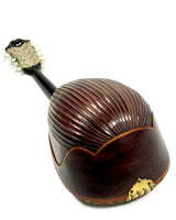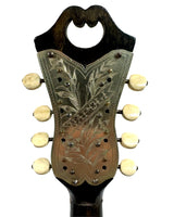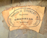 Cette mandoline décorée à côtes creuses de marque Graziella datée des années 1900 s'inscrit dans une tradition artisanale napolitaine de fabrication d’instrument richement décorés.