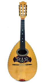 Dans les années 1950, cette mandoline plate de luxe apparaît comme un instrument raffiné, reflet de l’engouement post-Seconde Guerre pour les musiques de salon, les orchestres de variétés et les ensembles folk-traditionnels.