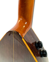 Le Modèle 6 représente un niveau intermédiaire à supérieur dans la gamme Sanchis, pensé pour offrir un équilibre entre qualité sonore, fiabilité de construction et polyvalence scénique, tout en conservant l’esthétique sobre et élégante des mandolines plates européennes.