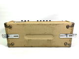 The Bandmaster was introduced by Fender in 1953. In 1963, it was fitted for the first time with a Blonde tolex and a gold grille. This model dates from 1964. In superb condition for its age. It has all these period accessory parts such as the piggyback bars, the headstock hooks on the cabinet, the cable for the original cabinet as well as its original tremolo pedal which activates the latter. The amp consists of a head and its cabinet made up of two 12" speakers.