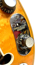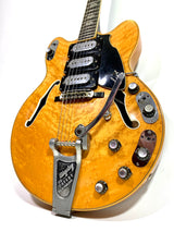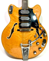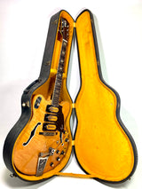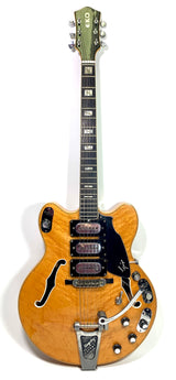 In the same vein as the Vox Ultrasonic, this model has effects integrated directly into the electronics of the guitar: a repeater (delay), a booster and a distortion. Each of the effects has a control potentiometer.