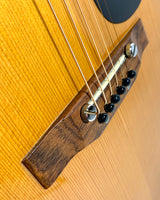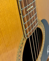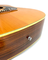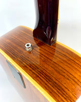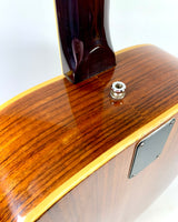 - Decorations: Rosette in fine wood marquetry / Threading on the edge of the table, fingerboard, back and head / White rectangular fingerboard markers / Two white mother-of-pearl pellets on the bridge