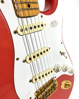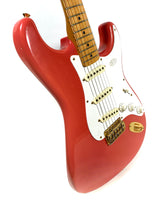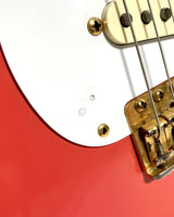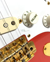 Ainsi, voici ici à la vente un superbe et rare exemplaire de Fender / Squier JV modèle ST'57-115, avec vernis nitrocellulose Fiesta Red, fabriqué au Japon en 1983.