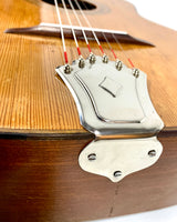 Entièrement dans le style des guitares manouches de Paris de ces années-ci, du style Di Mauro ou Castelluccia cette guitare n'a pas à rougir face à ces dernières.