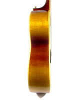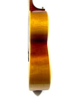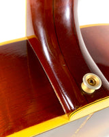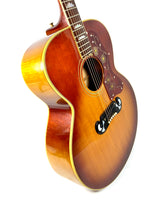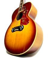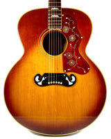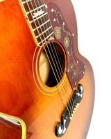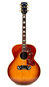 La SJ-200 a été nommée ainsi en raison de son corps plat super-large de 16 7/8 pouces, avec une table en épicéa rouge doublement renforcée, un dos et des éclisses en palissandre, et une finition sunburst.