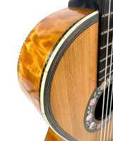Dans un magnifique état de conservation et de jeu, cette guitare saura autant combler de bonheur le collectionneur que le guitariste qui aura plaisir, notamment grâce à un très bon confort de jeu, à laisser s'exprimer sa superbe sonorité, tout en s'enchantant de la délicatesse de la lutherie, des bois et de la finesse des humbles décors de cette exquise guitare.