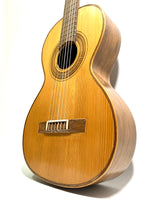 The guitar is also of a particular format since it is more "narrow" (as can be seen in the photos) than a normal classical guitar, between the romantic format and the classical format, which makes it of so much more interesting.