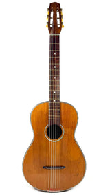 Ici, voici un superbe modèle dit parlor / manouche avec un corps typique en acajou en très bon état datant des années 1950.