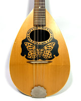 Here we have a model from the 1970s from the Eko brand which presents a particularity common to the guitars and mandolins mentioned above: the rounded bottom is made of composite, made of resin and fiber, with an imitation rosewood finish.
