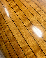 - Décorations : Repères de touche en nacre blanche (disques et étoiles) / Incrustations de nacre blanches en bordure table et de touche / Fileterie en bordure de table, de rosace et de fond