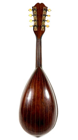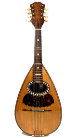 Typique de la lutherie napolitaine de la fin du XIXᵉ siècle, cette mandoline était distribuée par Fontana, situé au 49 Passage de Largue à Lyon.
