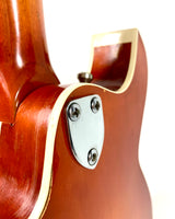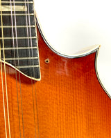 Tout droit venue des années 1970 cette mandoline plate, dans un style revisité du mythique modèle florentine de chez Gibson, n'a pas à rougir face à cette dernière quant à son look éclatant !