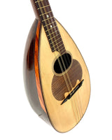 With a pretty Neapolitan stamp, a balanced sound, beautiful harmonics, good projection and good sustain, this mandolin will please mandolinists as much as collectors.