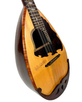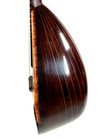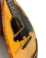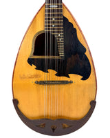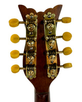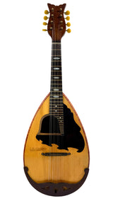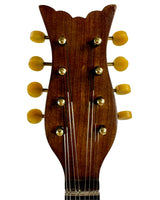 Les mandolines qu’il produit, comme celle présentée ici à la vente, suivent un modèle distinctif, reconnaissable à son ouïe en forme de "D", décalée sur le dessus de la caisse, en lien avec la touche dite "concert".