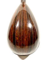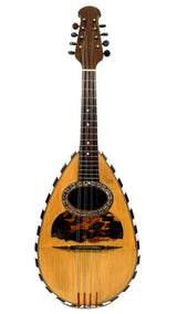 En somme une belle mandoline napolitaine sobrement décorée de nacre blanche avec un très bon confort de jeu et une super sonorité.