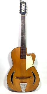 It is particularly known for these guitars with an unusual look like this 1/ERA with half-moon soundholes.