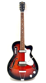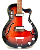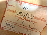 Very nice example of the 200 model, from the Eko brand, from the 1960's. Also available in a non-electrified acoustic model, this guitar is therefore also produced for its natural resonance and acoustics, which this example does not fail to recall. A very beautiful resonance to which is added the dynamism of these two single microphones. Perfect from blues to jazz to rock.